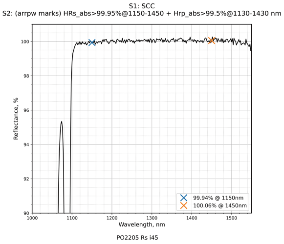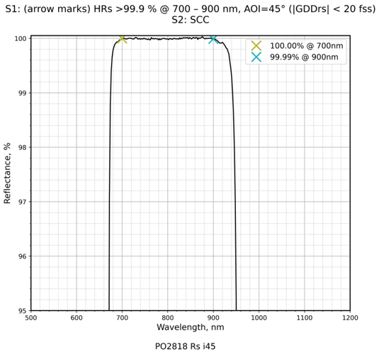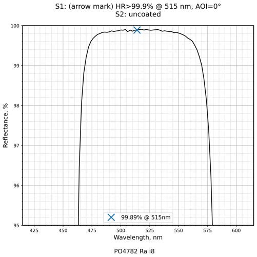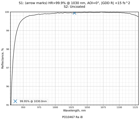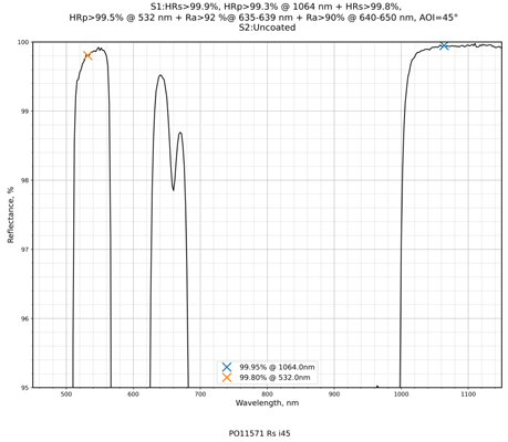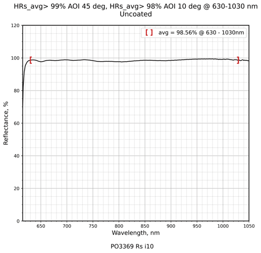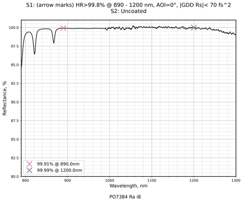 266-2060nm低色散高反射率平面反射镜,包含介质膜,镀金属膜。